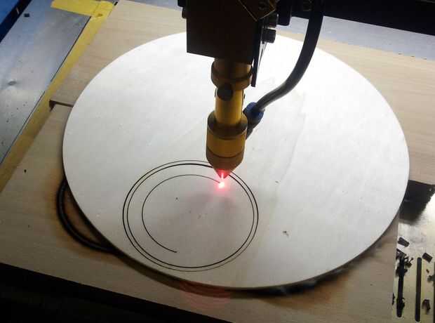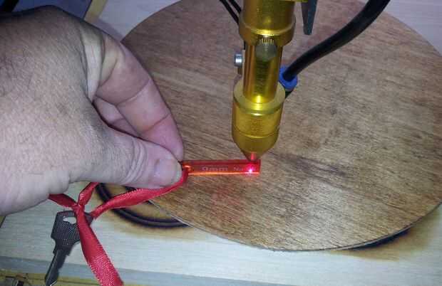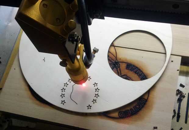 Después la madera trasera está en su lugar coloco la primera pieza a cortar en la parte superior y luego mover la cabeza láser Dile el punto rojo es apuntando a la marca ya había hecho. Usando la cuña enfoque (9mm) levantar o bajar la tabla para el láser se centra en la madera del proyecto. Si este está apagado, el corte no es limpio y se podría dañar la madera a utilizar.