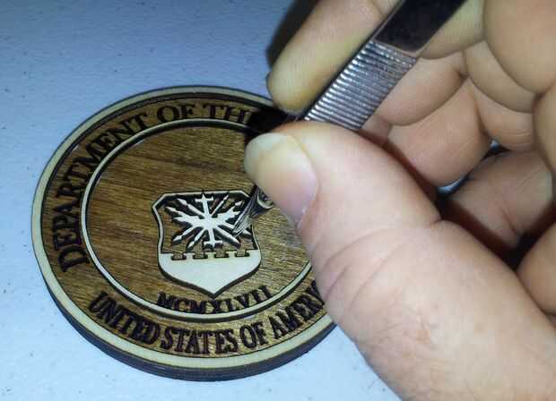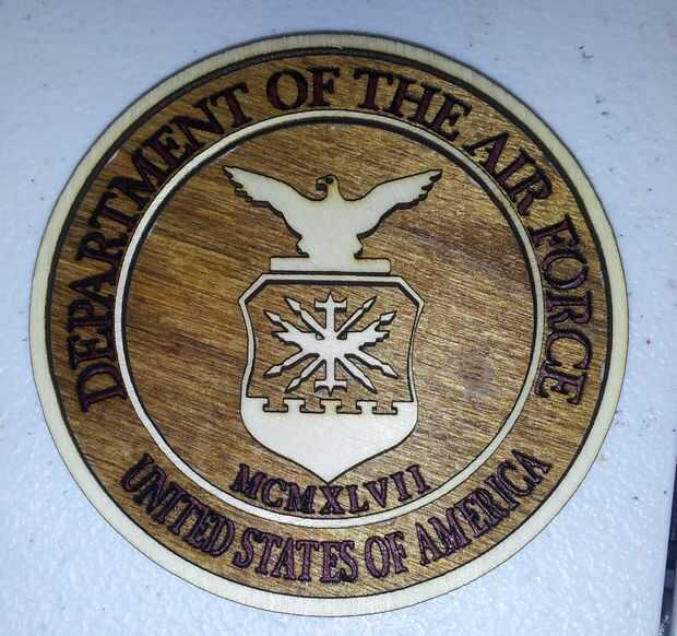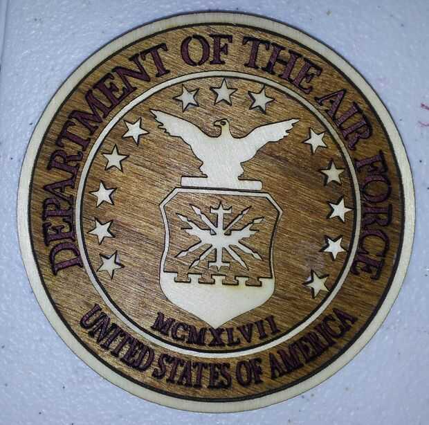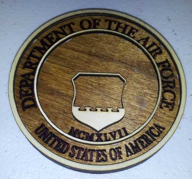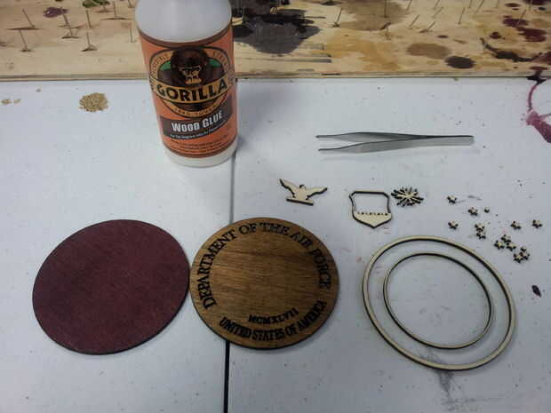 Una vez que el pegamento se seca a un final claro, el emblema es completado y puede ser disfrutado por quien alguna vez fue hecho. Esto hice una de 4 pulgadas, pero puede ser tan grande o tan pequeño como el láser puede cortar las piezas y aún verlo.