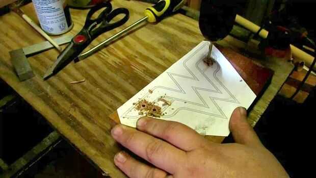 Una vez que había puesto el adhesivo, taladré un agujero en cada espacio que quería retirar para que se pueda insertar la hoja de sierra a través de la pieza.