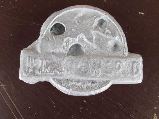 ¡ Pero espere! No ha vertido el metal incluso. Antes de empezar a verter el metal, se debe hornear el yeso en el horno a una temperatura media de unos 150-250° durante muchas, muchas horas. No horneo mío cuando vertió más húmeda atrapados en el yeso consiguieran sobrecalentados, convertidos a gas y burbujas hasta distorsionar mi emblema. La foto de arriba es el resultado final. Deja que se enfríe, saltaron fuera del molde, fundirse otra vez y había vertido posterior derecha en. Lo hice tres veces más y allí era todavía más húmedo dentro! Así que había cocido en el horno mucho y luego lo hizo mi última vierte, que el resultado final es mi foto de portada. Se puede ver una burbuja todavía! Pero con mi información que se puede hacer mejor que yo.