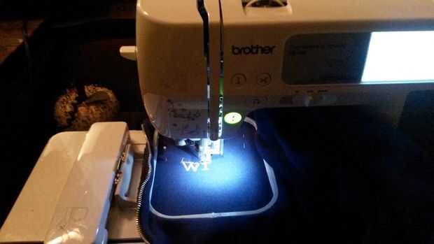 ya tenía esta venda y estaba buscando un poco triste, así que decidí emborderlo nuestro colegio favorito equipo WVU!Paso 1: Configurar y cargar diseño yo programado mi máquina con el logo de la WVU y la diadema en el aro de embordering con la hoja au