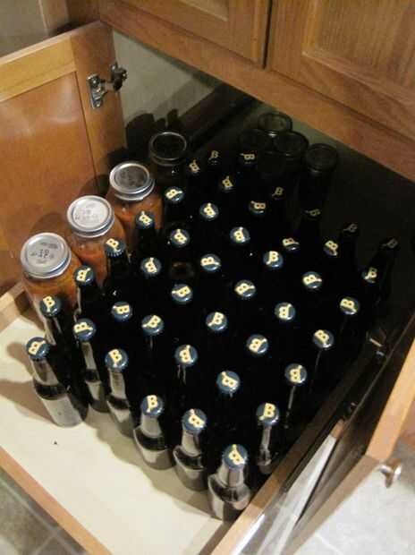 A ser construir un rack de secado y almacenamiento de información para sus botellas de cerveza vacías homebrew utilizando un alambre, estante del zapato de detrás de la puerta, capaces de comprarse para baratos Target, Home Depot o en otra parte. Est