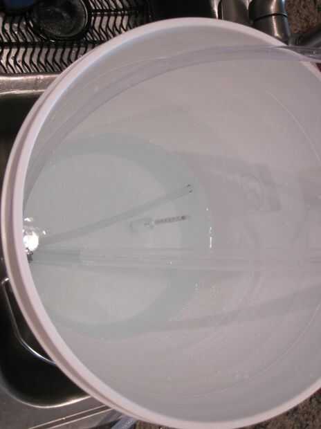 Si leen el tutorial sobre la elaboración de la cerveza casera o tiene experiencia en ti, sabes que desinfectar su equipo es una necesidad. Si no haces este paso bien, fácilmente podría arruinar su trabajo. Ejecutar las botellas a través de la lavadora de platos y un ciclo de desinfección (agua caliente, caliente seco). Puede repetir este proceso si desea ser exhaustivo. Para todos los otros instrumentos, utilice algún paso u otro limpiador para desinfectar todo.