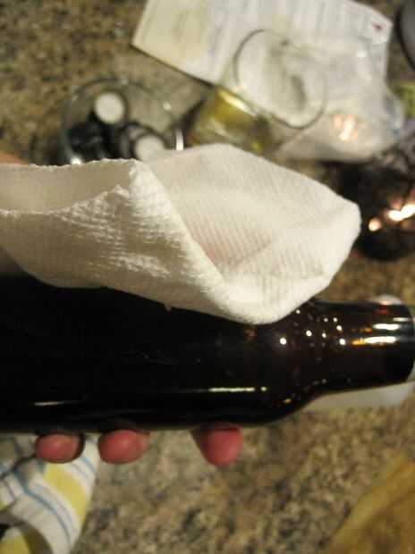 Ya que mi amigo que me ayudó con este proyecto era casarse justo como la cerveza acabado su acondicionado, decidí dedicar el brebaje a la boda. Por lo tanto, algunos sería obviamente servidos allí. Así que pasamos algún tiempo limpiar las botellas, quitando cualquier residuo pegajoso de etiquetas antiguas o cerveza. Alcohol isopropílico maravillas para la limpieza de ambos. También quería añadir algo a las botellas, así como todas las cervezas, que merecía una etiqueta de reemplazo para conmemorar la ocasión. Yo montada encima de algunas etiquetas en Microsoft publisher y planea imprimirlos antes de la boda.