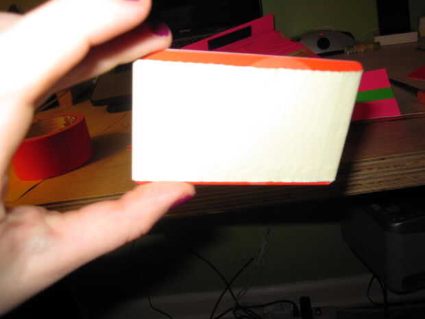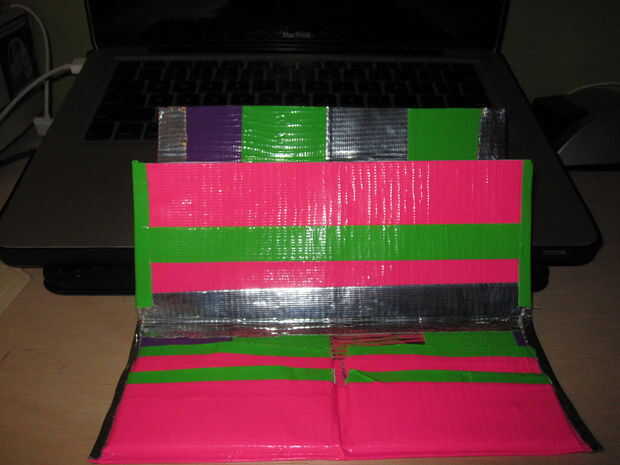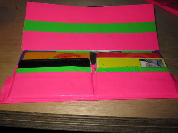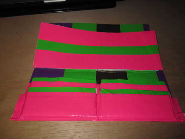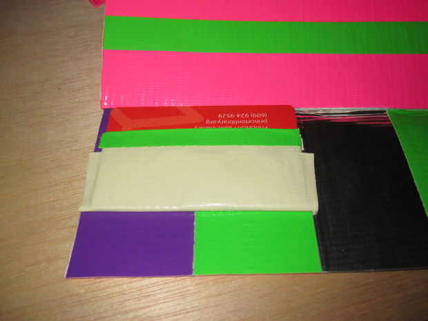 8. luego pone un pedazo de cinta sobre los dos bolsillos para que la parte pegajosa está cubierto.
