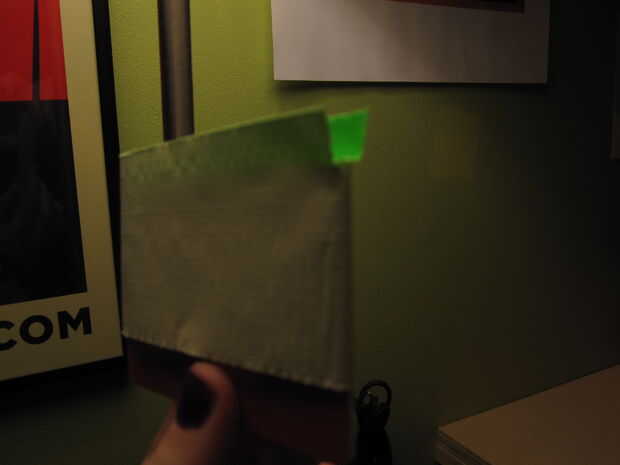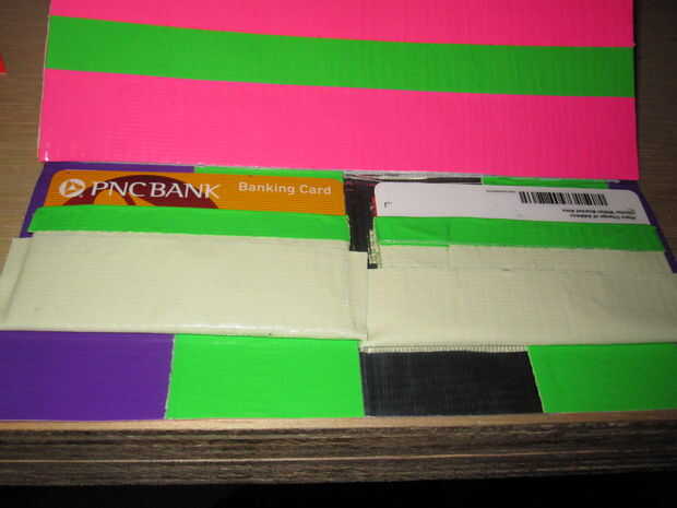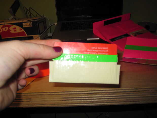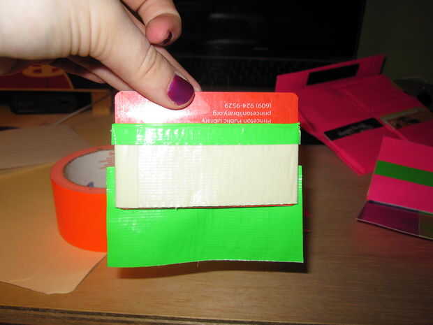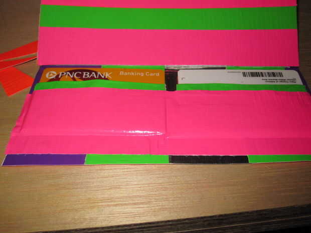 5. Tome otro pedazo de cinta adhesiva y coloque sobre la parte inferior de la bolsa de la tarjeta (parte pegajosa hacia fuera)