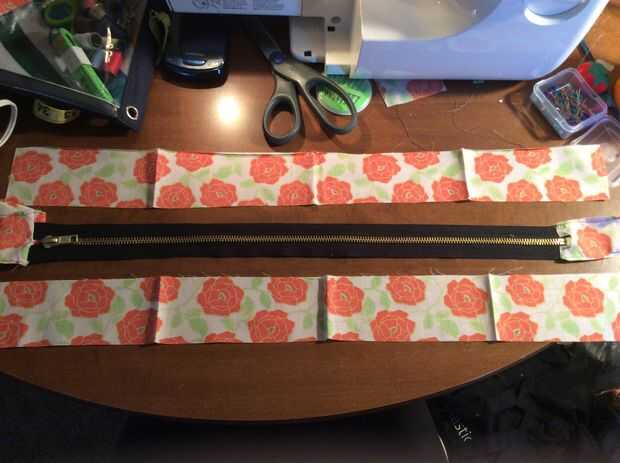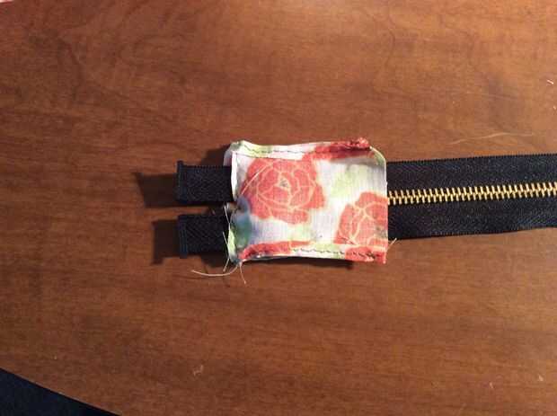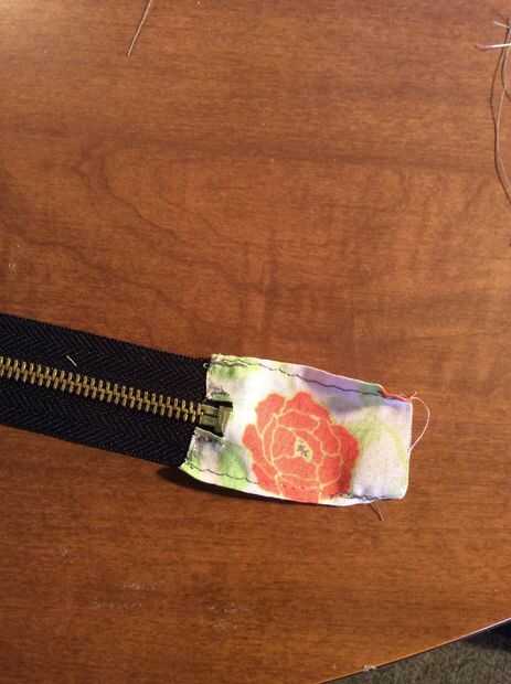 Primero preparé mi cremallera por el material de coser alrededor de él. Cortar pequeños cuadrados de material para fijar a los extremos de la cremallera. A un lado fácilmente cosí el material en el extremo de la cremallera con mi máquina. El otro extremo, sin embargo es un poco más complicado ya que termina con la pieza de metal y no tiene un final de nylon para coser el material. Entonces yo cortar una muesca para el final de la cremallera y mano cosió el material a cada lado del extremo de la cremallera. Yo había encerrado la mayor parte de mis extremos para que no debilite el material, la muesca en el extremo de la cremallera se puede sellar con cola blanca para evitar que se deshilache.