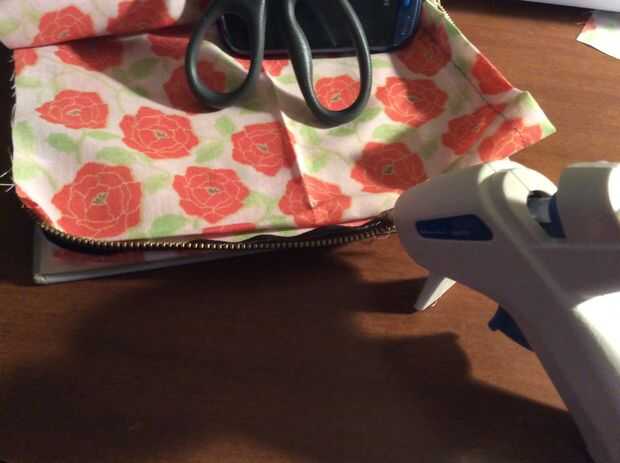 A continuación hago un interior liner para cubrir toda la maquina y hacer que se vea bonito. Tenía suficiente material de izquierda para hacer una pieza sólida. Me corte un poco más grande que el tamaño del interior y luego lo había encerrado. También puede plegar los bordes. Si no tienes un trozo lo suficientemente grande, puede tener dos piezas en cada lado y en el centro que cubre la cubierta del libro y los bordes del material de la cremallera.