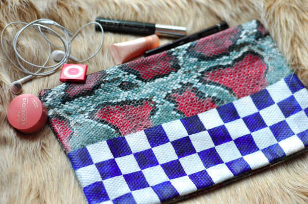 1. crear una rejilla con la cinta adhesiva en la parte inferior del embrague. Empezar con las horizontales y de la parte inferior que las líneas rectas. Para que todos los cuadrados del mismo tamaño, utilice la cinta adhesiva para cubrir la parte entre las tiras de cinta adhesiva. Hacer lo mismo con las verticales.