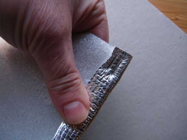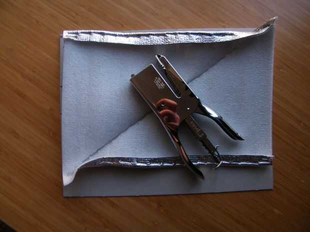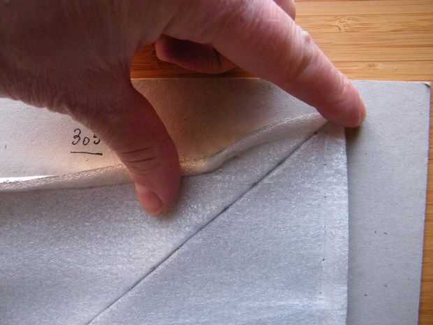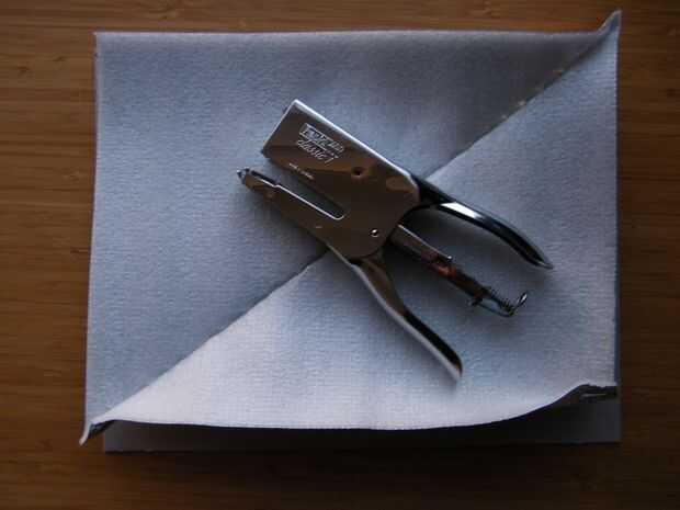 Gire en el interior del material, la aleta y engrape dos longitudes más largas (en el cuadro horizontal).