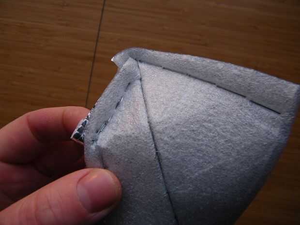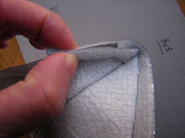 Doble y aprox. 45° parte/el resto del labio (de dimensiones 80-120) de la curva hacia la parte más larga de la longitud (con grapas en el paso 2).