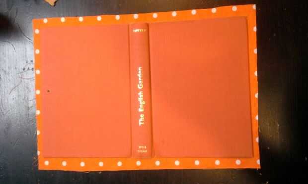 Abra la tapa del libro y pone abajo de plano. Medir el libro. Añadir una pulgada a cada lado del libro. Cortar a la tela al tamaño apropiado.