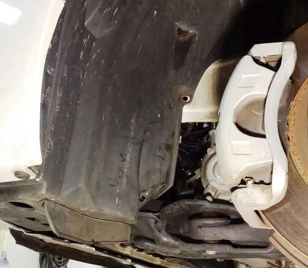Tire el guardabarros interno fuera del camino. No necesita ser quitado totalmente.