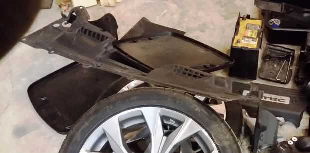 Retire los ganchos del frente 6 y el tornillo del guardabarros interno izquierdo.