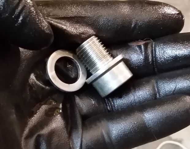 Reemplace la arandela de aplastamiento (94109-14000) del enchufe y vuelva a insertarla. Esfuerzo de torsión a 29 pies/lb.