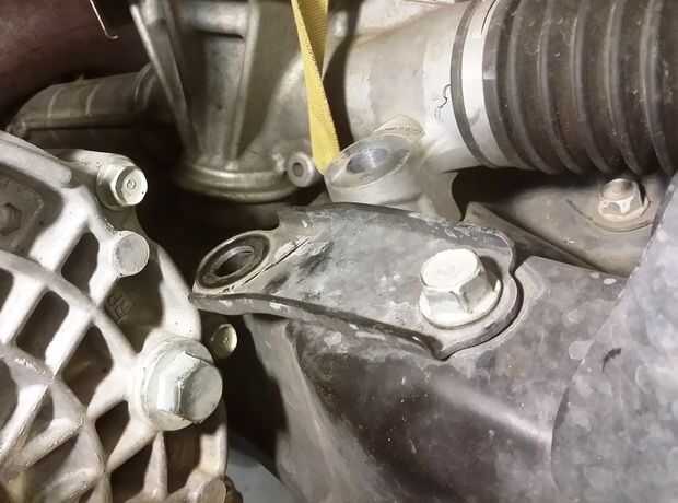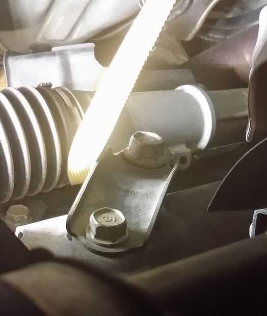 Quite el perno de 12mm del lado derecho de la cremallera y afloje el perno de 10mm en el soporte de refuerzo.