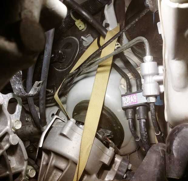 Use las correas para soportar el peso de la cremallera de dirección en ambos extremos.