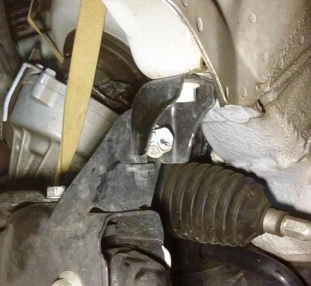Afloje los 2 tornillos en el soporte del subchasis que hacia las ruedas.
