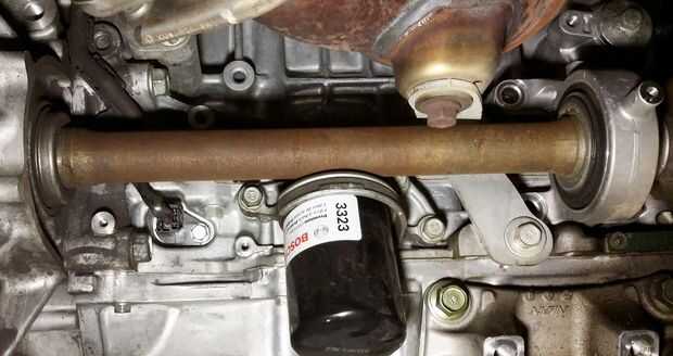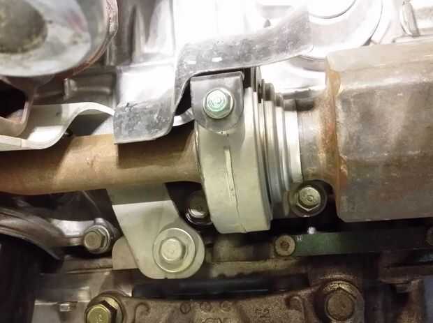 Retire el protector de calor en el cojinete del eje de trozo. Hay 2 tornillos.