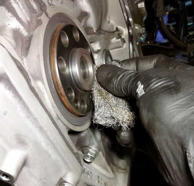 Compruebe el sello principal trasero. Si se produce un derrame o si el coche tiene un montón de millas, ahora es el momento de reemplazarlo.