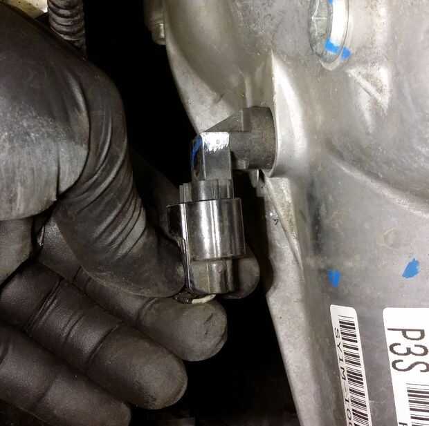Desconecte el arnés del sensor de velocidad de la transmisión, desconecte el sensor de velocidad y tuck el mazo de cables fuera del camino.