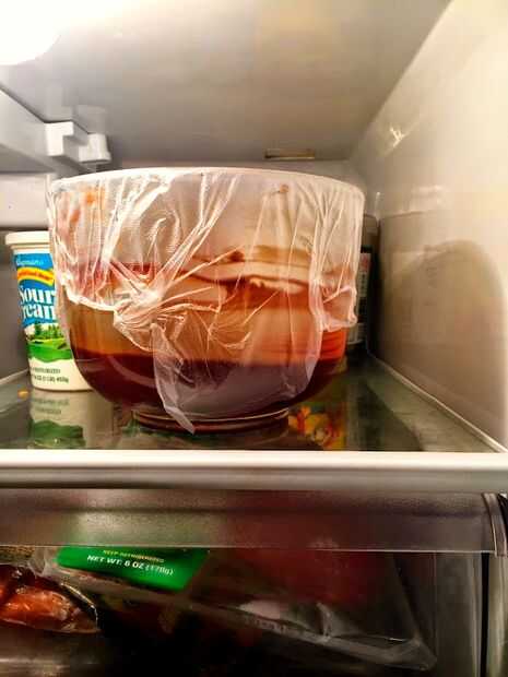 Cubren la ganache con un envoltorio plástico y refrigerar por 1 hora o más, hasta que la ganache es firme. O permite la ganache de establecer durante la noche a temperatura ambiente. Prefiero hacer el ganache de sentarse durante la noche en el refrigerador, como intensifican sabores.
