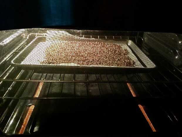 Esparza las nueces en una sola capa de frutos secos en la hoja. Hornee por 4-6 minutos, o hasta que estén doradas y se han convertido en fragante. Cada pocos minutos, sacudir la hoja para mezclar las tuercas, para evitar manchas oscuras o quemadas.