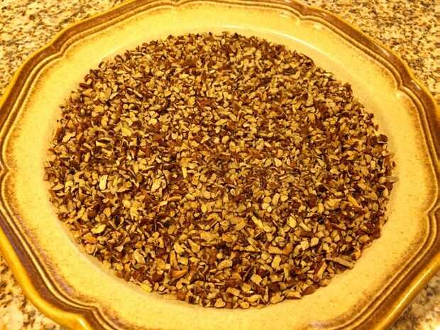 Cuando las nueces se han convertido en oro y se han convertido en fragantes, retire del horno y transferencia de las tuercas a un plato que se enfríe completamente.