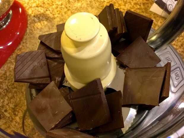 Romper el chocolate y coloque en un tazón de procesador de alimentos.