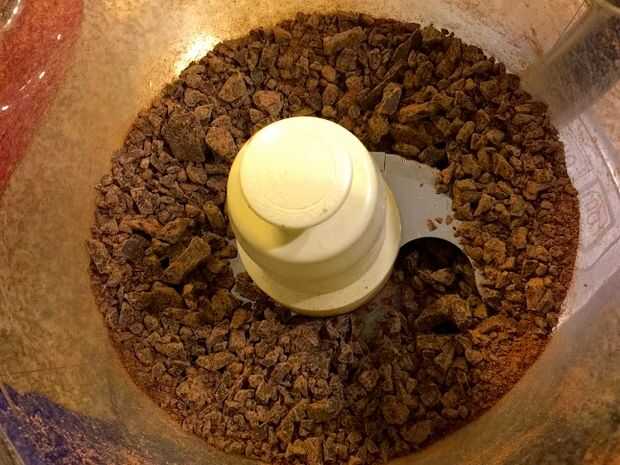 Pulso el chocolate entre 15-18 pulsos o hasta que el chocolate en trozos pequeños.