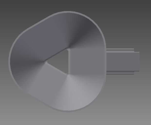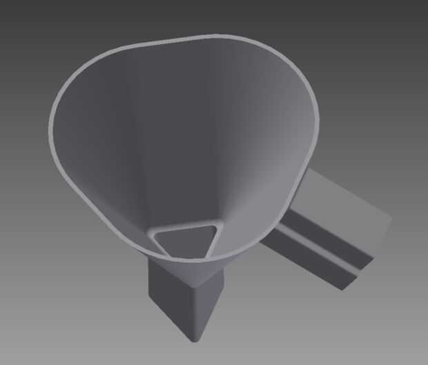 Utilice Autodesk Inventor o fusión para crear un embudo para caber la abertura triangular en la lata de crema.