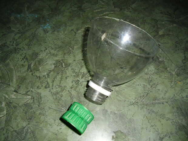 Cosas que necesitará:-una botella de agua-tijeras-cinta o grapas (grapas funcionan mejor)-cuerda o string(opional)Paso 1: Cortar la botella de agua Cortar la botella de agua para hacer un embudo de la parte superior y puede tirar la tapa.Paso 2: Hace