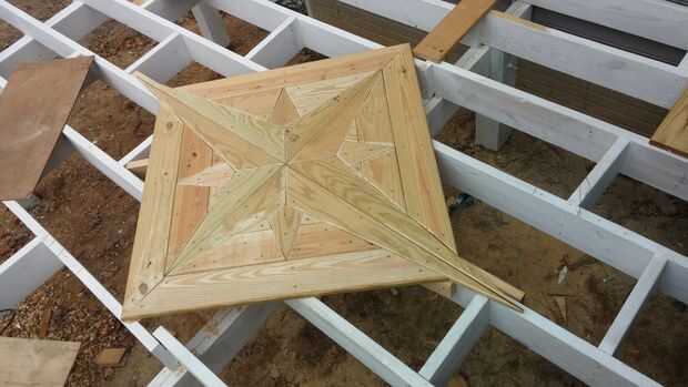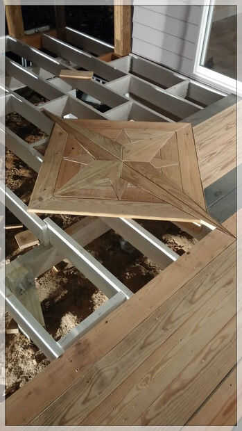 El proceso era similar pero para estos que quería ser capaz de garantizar a la empresa entre sí y a los soportes para las piezas pequeñas. Corté todas las partes mantener en grupos numerados 1-4. Doblé sobre cada pieza para que coincida con el borde de fábrica. Entonces me galleta había articulado todas las piezas juntas. (no de que tiene fotos, se me olvidaba. Estaba en un rodillo.) ASÍ, después de instalar todos los triángulos pequeños que tuve una estrella completa. Entonces todo lo que se dejó para hacer fue instalar las placas de cubierta. Así como se puede ver con mucha paciencia, tiempo y planificación que puede ahorrar una tonelada de dinero y darse uno un deck bueno en un precio asequible.
