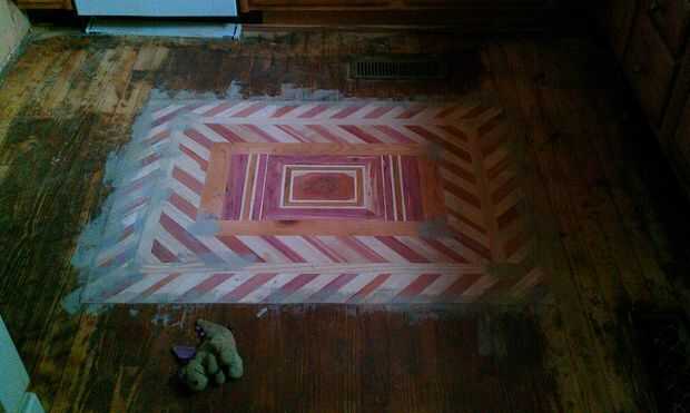¿Tiene usted algún desecho o resto pisos de madera dura que sería un crimen hacer leña?¿Crees que pisos de madera son nominal, o inadecuados en un hogar con un gran perro de barro?Aquí es un proyecto que use esas sobras y girar cabezas cuando trata d