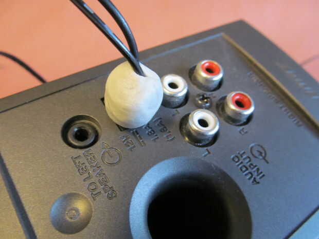 Sí puede masticar el chicle pero, creo que un poco de agua es mejor para esta aplicación. Limpiar todo el polvo de la goma y amasar hasta que parece regular edad masticar goma de mascar. Formar el tapón y deje que se siente. Asegúrese de que no interfiere con otras conexiones. Como se seca endurecerán; sosteniendo el alambre y que sirve como un agarre.
