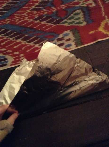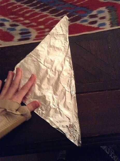 Doble el papel de aluminio por la mitad, por lo que parece un triángulo.