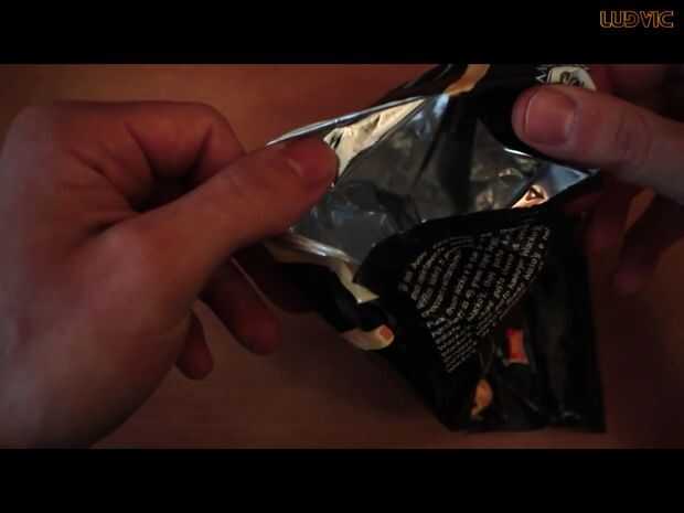 Tomar la bolsa de patatas fritas y lavarse cuidadosamente después de una pieza cortada de un lado y verifique el tamaño correcto de rollo de papel