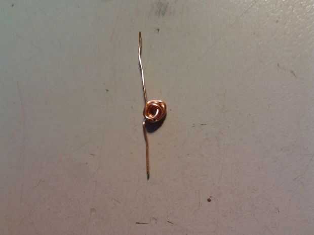 Paso 3: hacer una bola con el alambre dejando aproximadamente 1,5 cm en juego y 2 a 3 cm en el otro extremo.