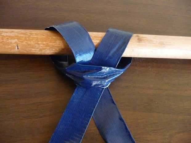 Saque una tira de 30" de cinta adhesiva y doble (horizontalmente) sobre sí mismo. Necesita 2, así que hacer esto dos veces.