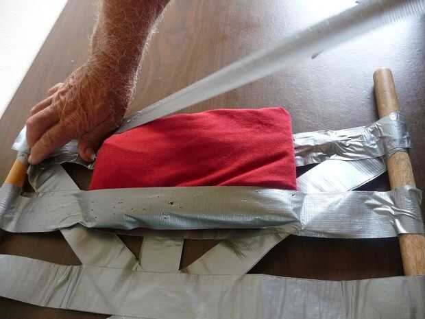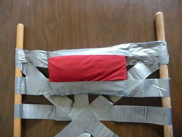 ÚLTIMO (pero no menos importante) es el paso importante de lograr a la persona en la camilla. Esto se puede lograr con... MÁS cinta aislante!