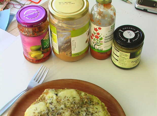 apenas empiece a dorarse en la parte superior), quitar el calor, y plop hacia fuera en un plato. Se dividen por consiguiente entre había montado comedores. En este caso lo tengo todo a mí mismo (insertar Risa malvada aquí), ya que estoy sola (risa que se arrastra en corteza expresando locura agridulce con tintes anhelando ausente socio comer BC), pero dividirla en dos, para crear un 'Barranco de condimento'.