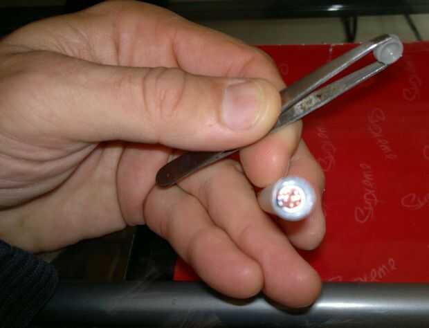 Puede utilizar sus pinzas para ello. Si eso no funciona, un destornillador plano relojeros hará el trabajo (o cualquier agudo cuchillo... pero ¿por qué arriesgarse?)