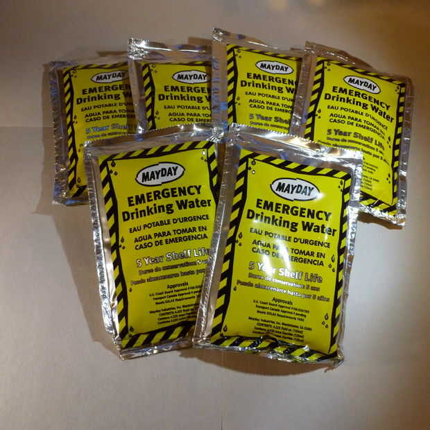 Tengo bolsas de agua potable embaladas en una bolsa ziplock grande. He optado por estas bolsas para que no se absorbe en el refrigerador como regular las botellas de agua. No error de estos para el suministro regular del hogar. En este pack hay 20 bolsas. Creo que esto es más que suficiente para que 2 personas sobreviven durante 3 días, que nos daría 3 bolsas por día por persona, además de unos extras. Que no puede satisfacer el galón por persona por recomendaciones del día, pero es más que suficiente si es solo agua que podemos conseguir.