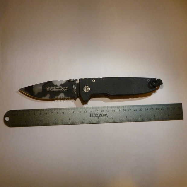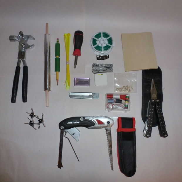 La herramienta Sierra en casa tengo Depot y fue diseñado como una herramienta de pared seca, pero es perfecto para este tipo de juego, ya que tiene un cuchillo, una sierra, un punzón y una envoltura conveniente con un pasador de cinto.