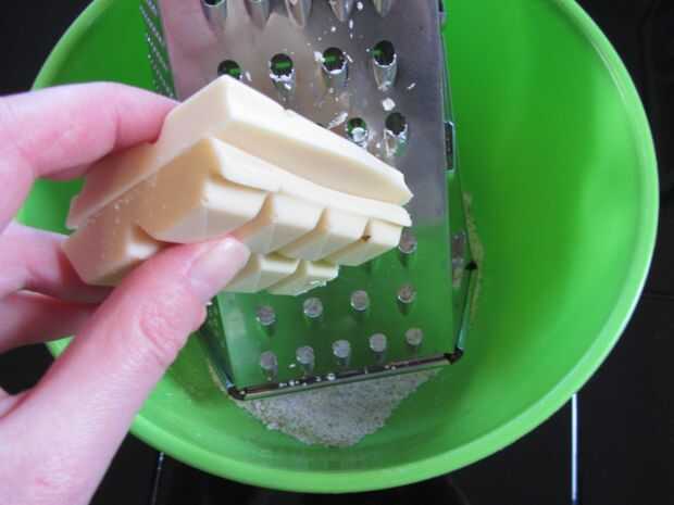 • Rallar el chocolate, añada la harina, soda, polvo de hornear y la sal y mezcle.