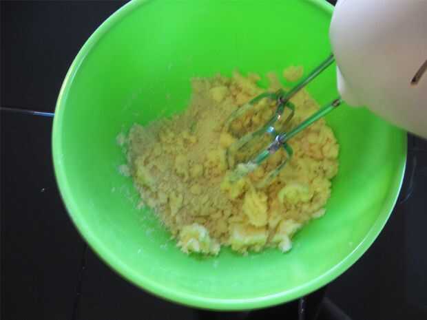 • crema mantequilla con ambos azúcares.  batir el huevo y la vainilla juntos y batir a la mezcla de crema.