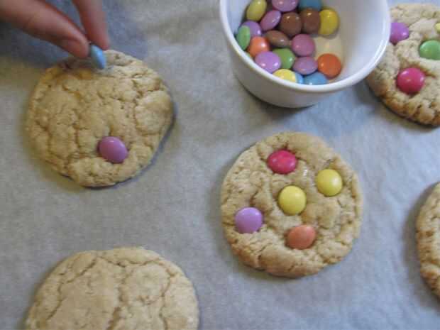 • Como extras así como añadir a la masa de galletas, puede insertar dulces como smarties o m y m ' s en las cookies recto después de que se extraen del horno y todavía suave. Se celebrará en el lugar cuando se enfríen las galletas.