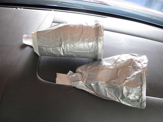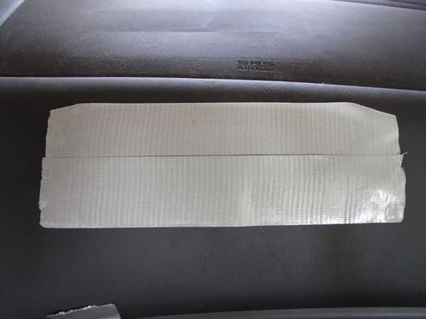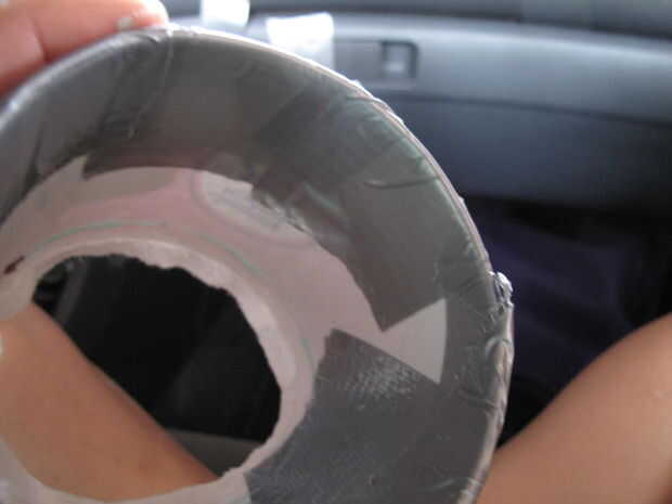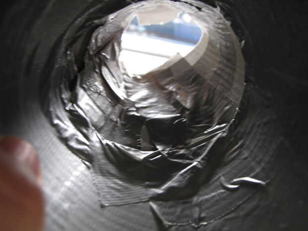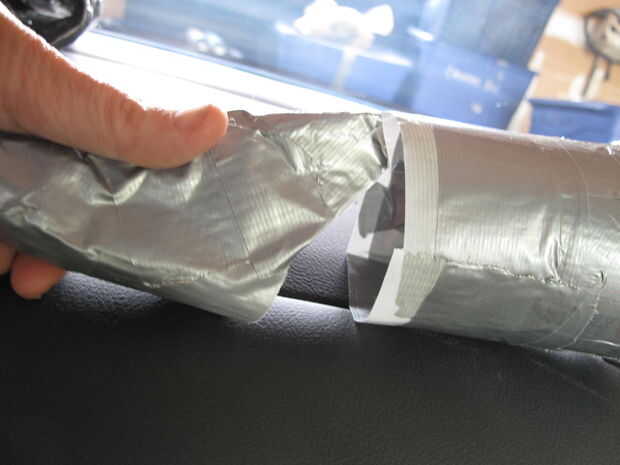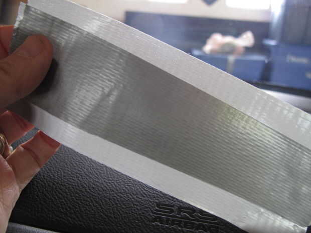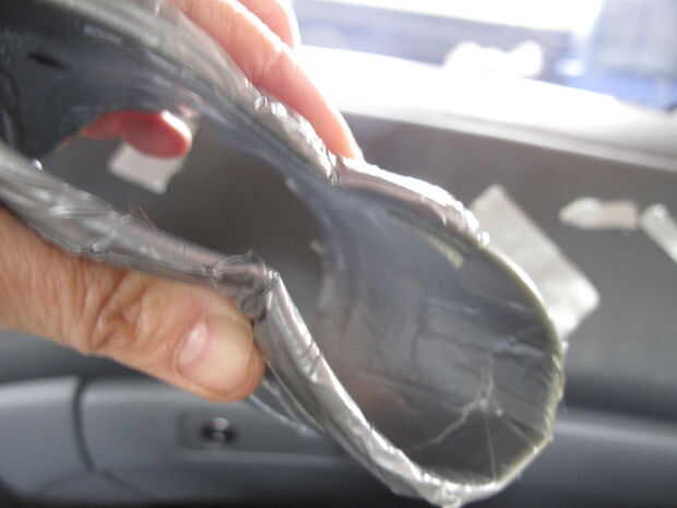 - Corte dos pedazos de cinta adhesiva para conductos (unos 6-8 pulgadas).