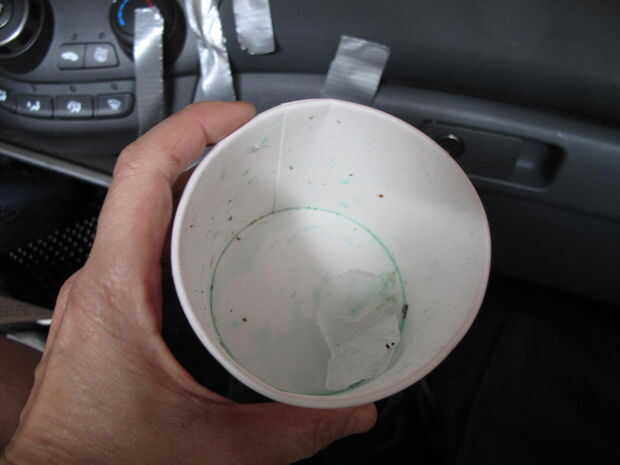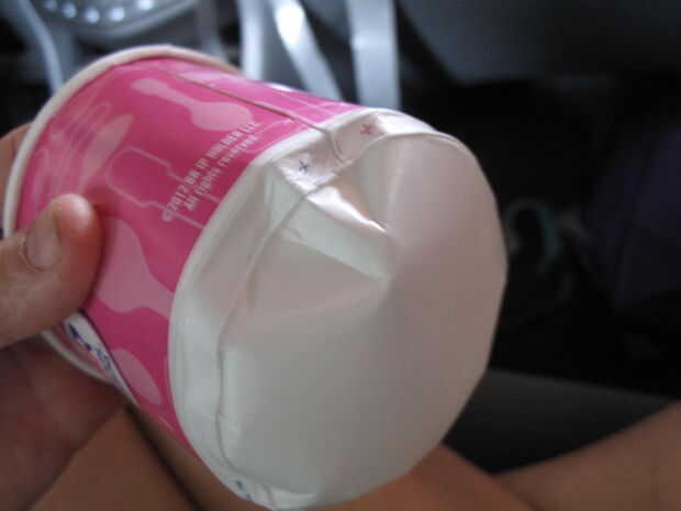 Si usas una taza de papel: Después de haber terminado que cubre la Copa, apriete el extremo más ancho de la Copa de un pequeño apretón y dejar ir. No debe permanecer contraída sobre sí misma. Si es así: