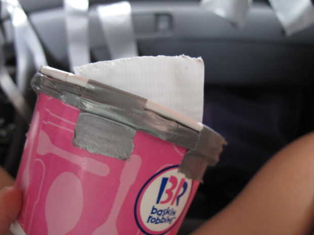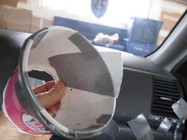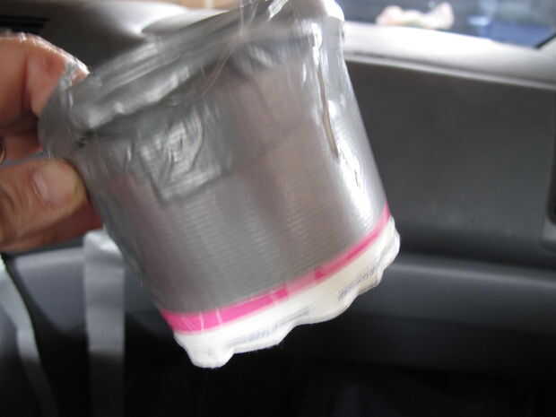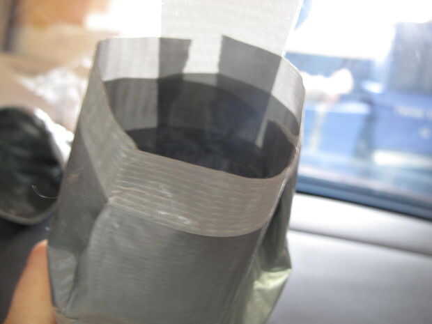 - Utilice la cinta para cubrir enteramente la Copa. Asegúrese de que usted superponga los bordes de la cinta del conducto para mantener un sello líquido de prueba.